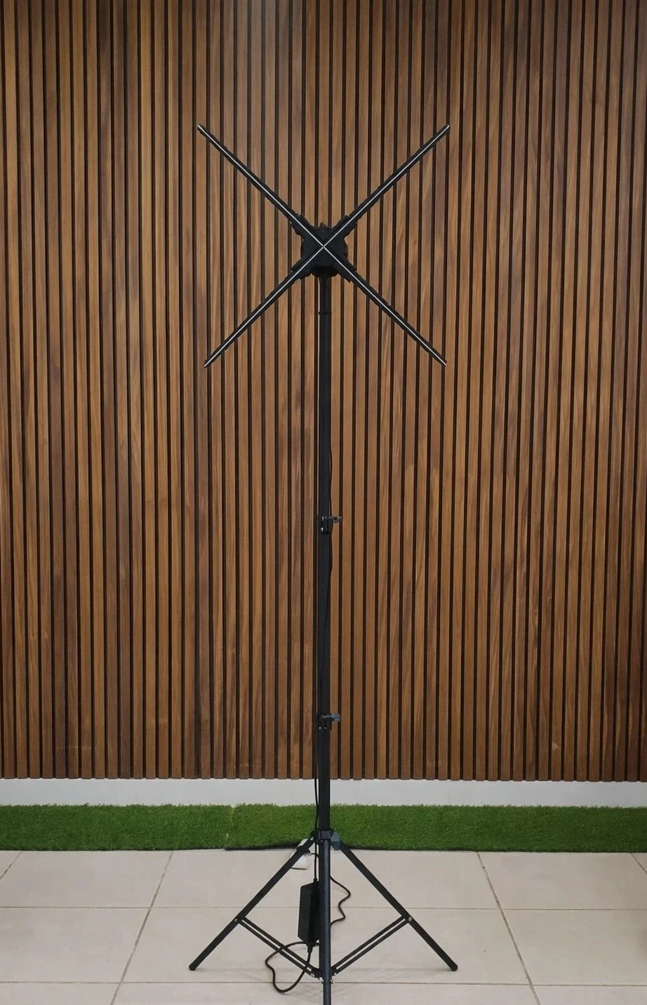 Це компактне універсальне рішення для ефектної презентації бренду, товару або послуги. Конструкція складається з надійної триноги та голографічного 3D вентилятора діаметром 65 см, 75 см або 100 см, що створює яскраве об’ємне зображення у повітрі.